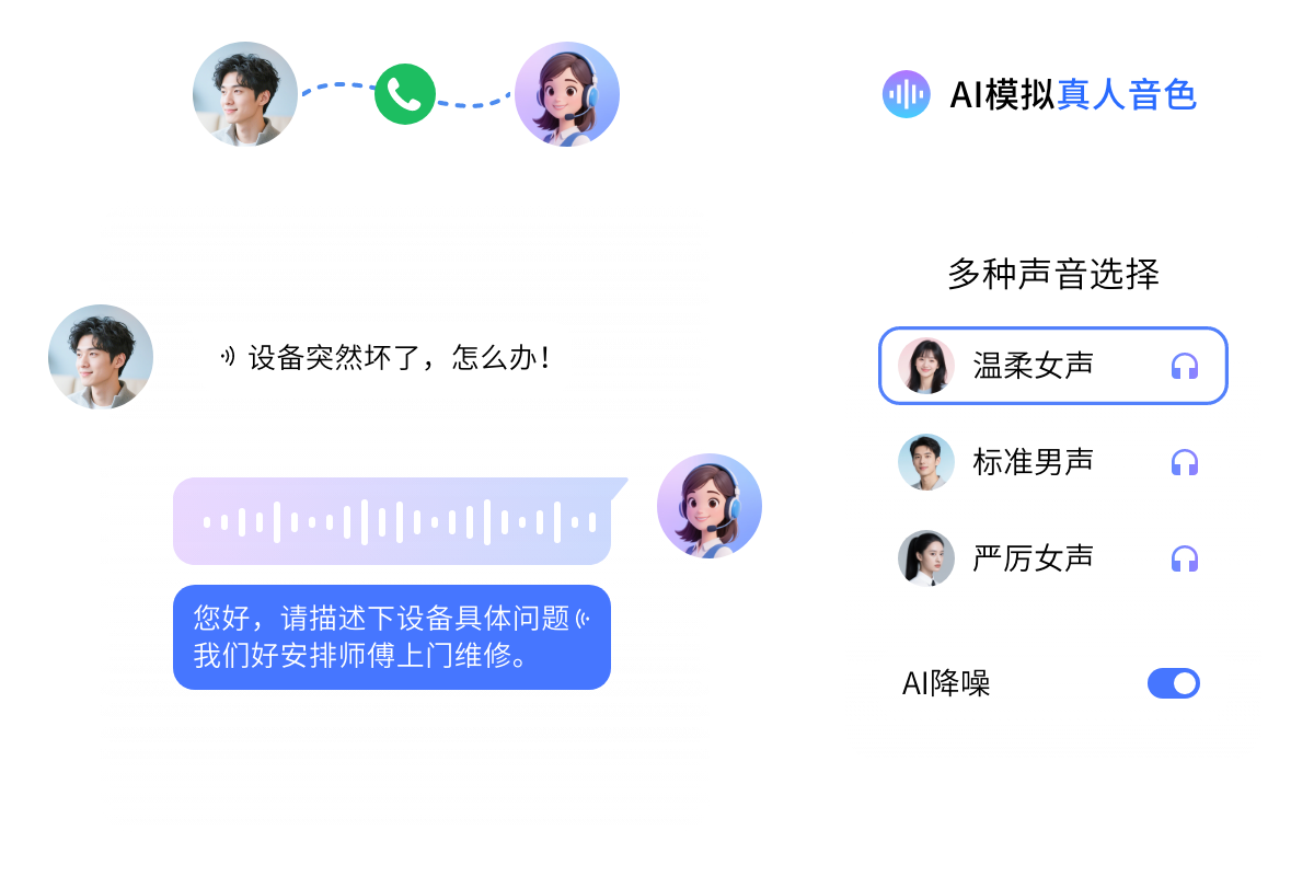 超逼真人声,拟人化互动。结合高性能TTS和AI大模型深度语义理解,AI语音机器人能识别方言和模糊追问,可以随时插话、打断,实现80%以上常见问题自动解答。