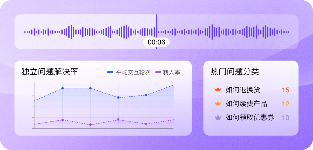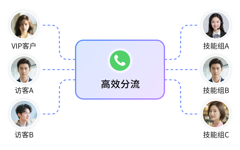 AI语音机器人主动识别自身能力边界,遇到复杂需求、无法理解的问题自动触发转人工流程,AI语音机器人根据问题类型、客户等级等转接至不同的技能组或专属坐席接待。