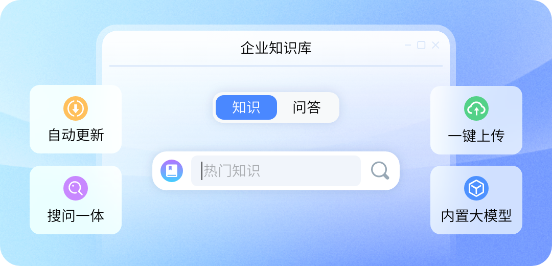 非传统相似问拆词条,word、excel 等多格式解析,无需上传 FAQ,海量资料秒级搜索应答,新知识自动更新,为企业节约训练维护成本。